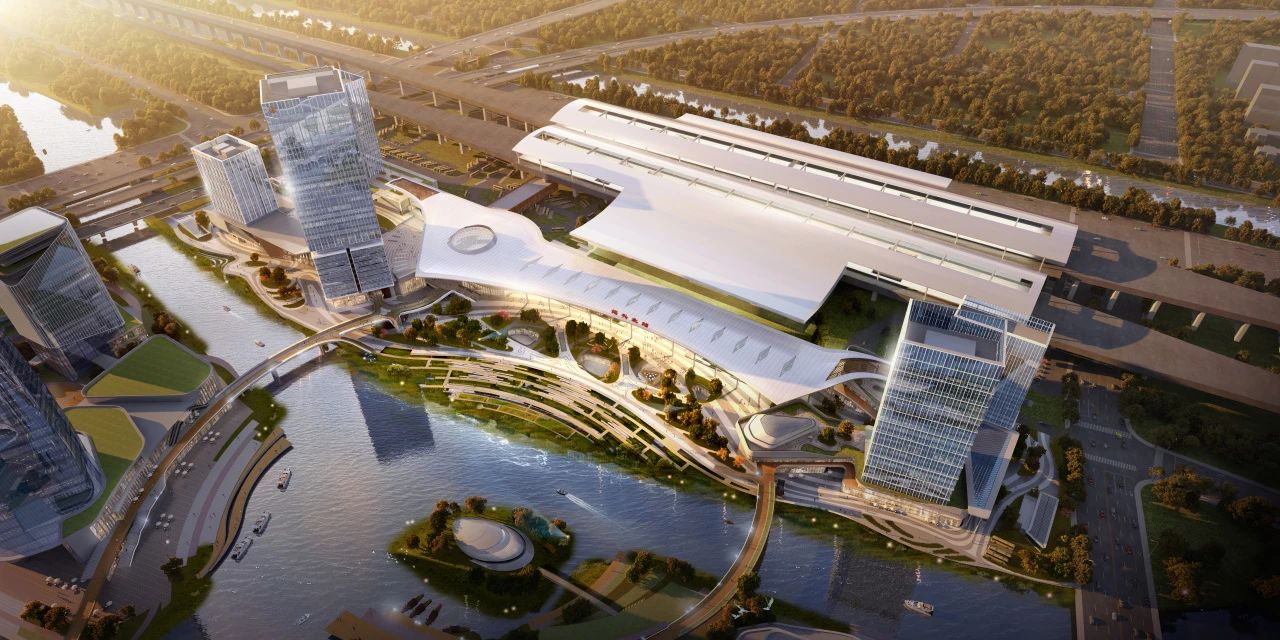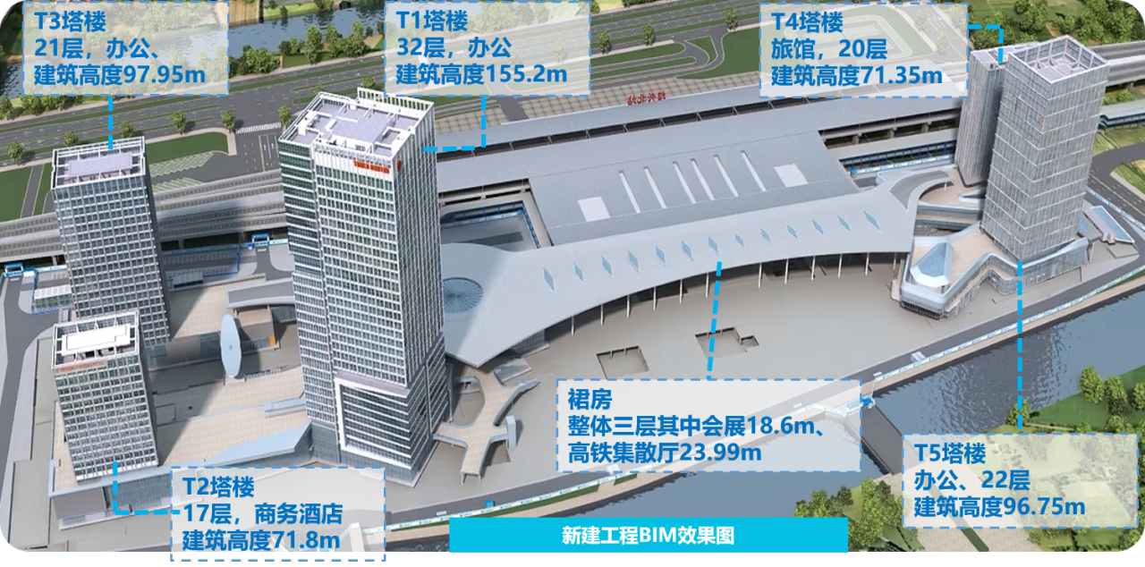 該項目是浙江省重點工程、紹興市一號工程,位于紹興北站周邊區(qū)域,北鄰高鐵站房、南靠嘉會河,總建筑面積約55萬平方米,其中地下三層(局部四層)、地下建筑面積達22萬平方米,地下大空間結(jié)構(gòu)復雜,是集商務辦公、科創(chuàng)研發(fā)、星級酒店、商業(yè)零售等多重功能于一體的智慧型城市交通綜合體。