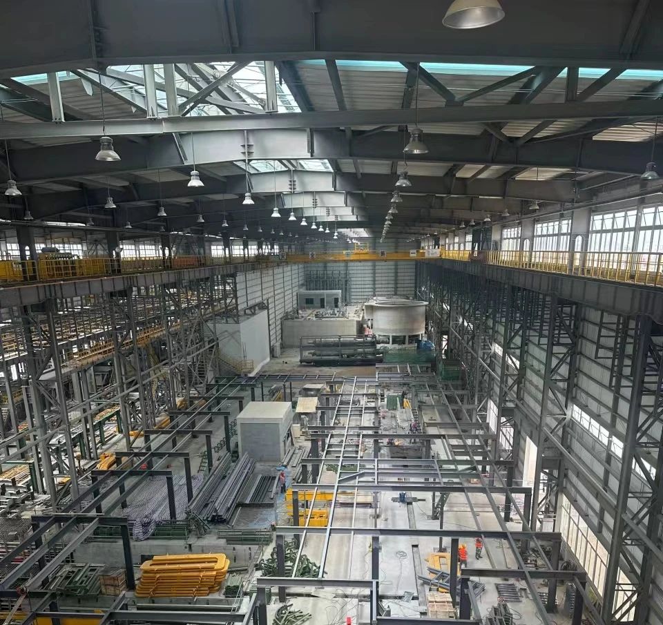 項(xiàng)目是公司首個(gè)重型鋼結(jié)構(gòu)廠房項(xiàng)目,橫向跨度最大30米,廠房高度最高25.2米,預(yù)埋螺栓公稱(chēng)位置偏移公差不超過(guò)2毫米,頂部標(biāo)高偏差不超過(guò)5毫米,鋼結(jié)構(gòu)施工難度大。公司承建部分共分為兩期,總建筑面積15萬(wàn)平方米,一期在2022年9月竣工投產(chǎn),預(yù)計(jì)年可生產(chǎn)不銹鋼、鎳基合金等30萬(wàn)噸,二期在今天正式投產(chǎn),兩期項(xiàng)目全部達(dá)產(chǎn)后,預(yù)計(jì)年?duì)I業(yè)收入200億元、利稅20億元,帶動(dòng)就業(yè)1000人以上,為煙臺(tái)市高端精密材料事業(yè)發(fā)展,打造黃渤海新區(qū)專(zhuān)精特新產(chǎn)業(yè)園區(qū)標(biāo)桿,建設(shè)萬(wàn)億級(jí)城市貢獻(xiàn)力量。