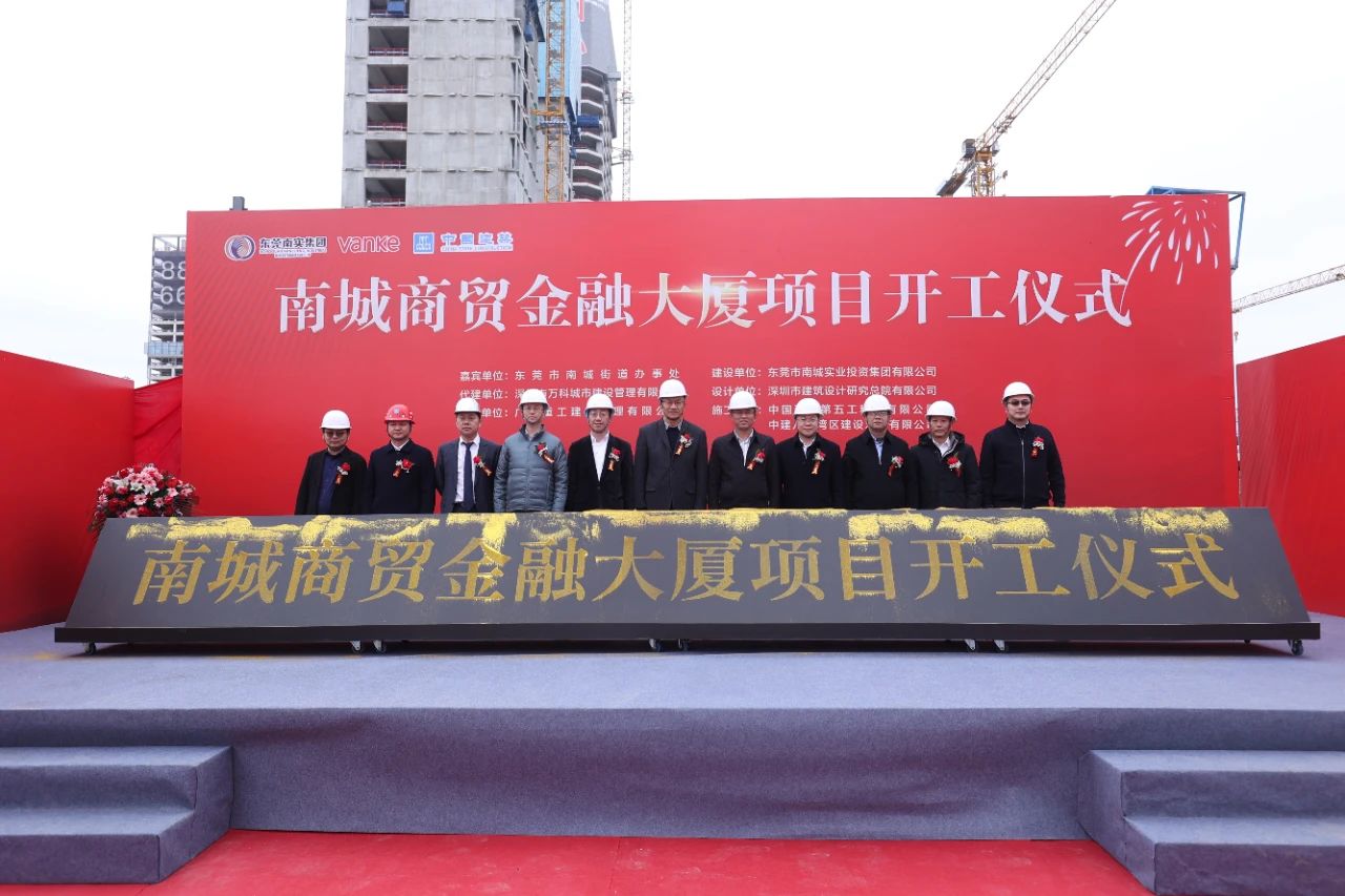 12月19日,東莞南城商貿(mào)金融大廈項目舉行開工儀式。東莞市南城街道黨工委書記朱利民,南城街道黨工委副書記、辦事處主任韓暖渠,南城街道黨工委副書記朱沃強等領(lǐng)導(dǎo)班子成員,東莞市南城實業(yè)投資集團有限公司總經(jīng)理李富恩,東莞市萬科房地產(chǎn)有限公司總經(jīng)理李東、副總經(jīng)理劉健華,深圳市建筑設(shè)計研究總院副院長吳南華參加儀式。