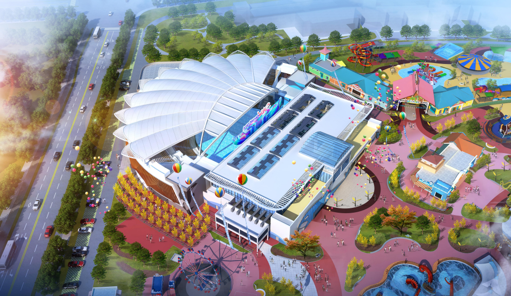 項(xiàng)目二期占地7.32萬平方米,包含虎鯨館、主題餐廳及水上游樂設(shè)施,預(yù)計(jì)2024年7月完工。作為中原地區(qū)最大的虎鯨表演場地,虎鯨館總建筑面積2.4萬平方米,由三個(gè)水池及一個(gè)看臺(tái)組成,可容納3600名觀眾。