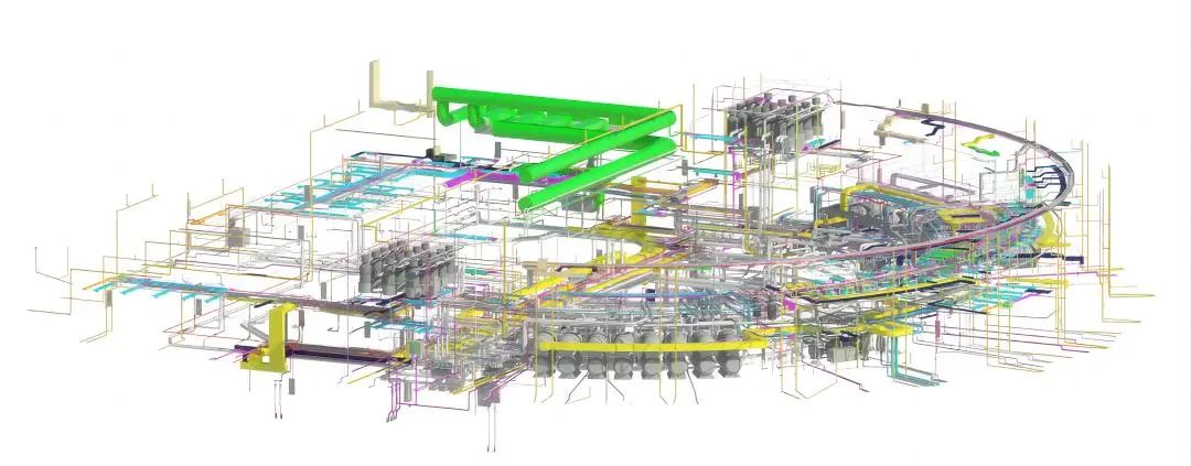 由于場館內(nèi)虎鯨等對(duì)環(huán)境要求高,項(xiàng)目運(yùn)用特色海洋生態(tài)維生系統(tǒng)自動(dòng)化和能耗控制技術(shù),利用BIM技術(shù)將設(shè)備管線與場館的主體結(jié)構(gòu)及機(jī)電管線進(jìn)行綜合排布,保證場館溫度、潔凈度、PH值等達(dá)標(biāo),營造舒適健康環(huán)境。