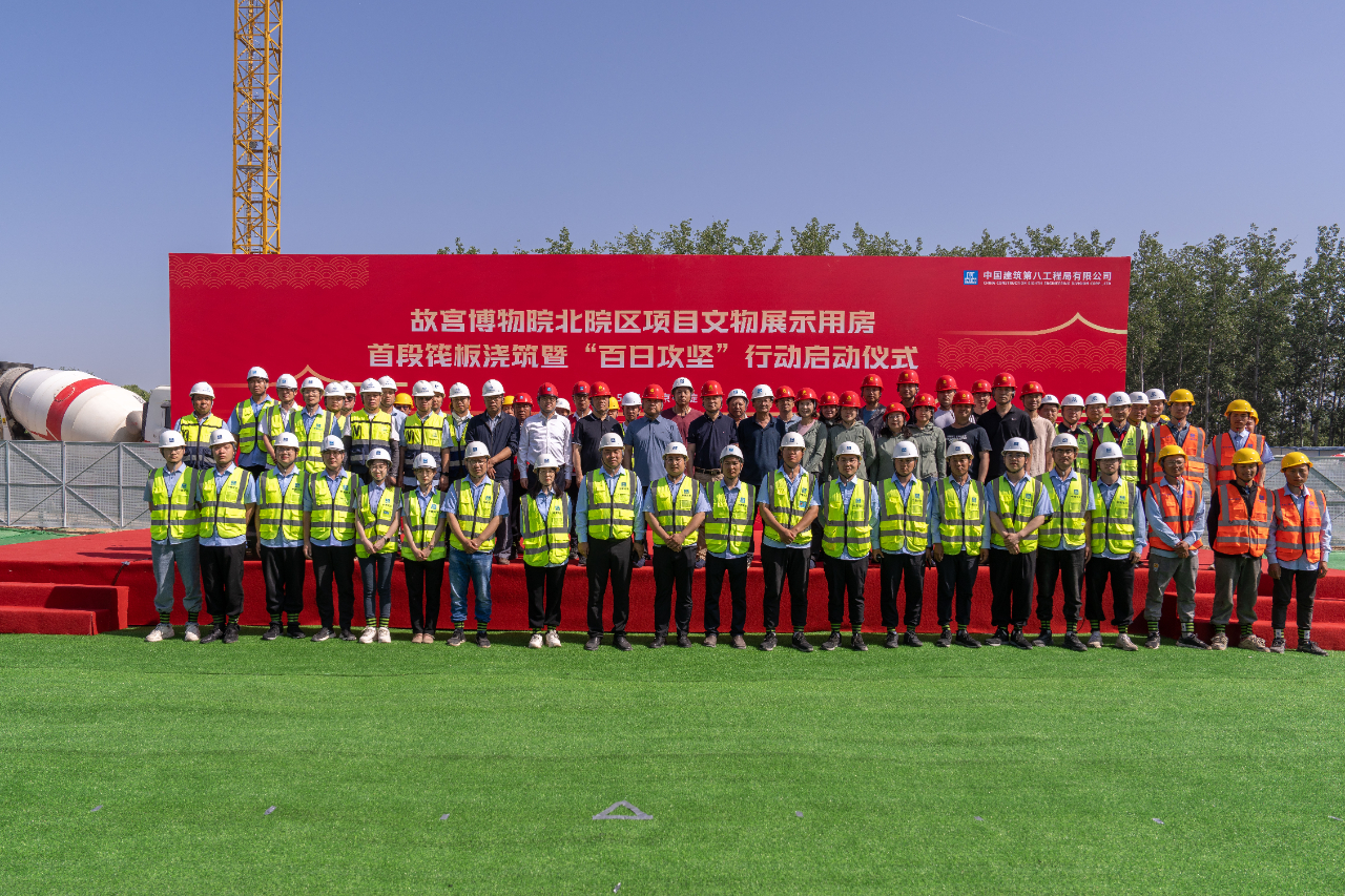 為激發(fā)建設(shè)者勞動熱情,聚力攻堅下一階段目標(biāo)任務(wù),5月17日,中建八局承建的故宮博物院北院區(qū)項目舉行首段筏板澆筑暨“百日攻堅”行動啟動儀式,標(biāo)志著文物展示用房全面進(jìn)入主體結(jié)構(gòu)施工階段。