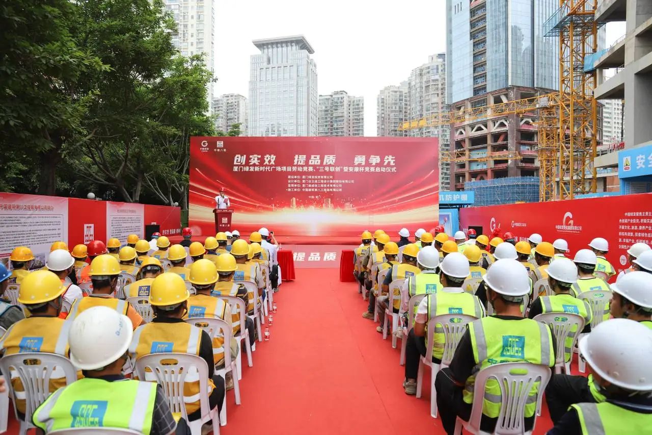 5月30日,廈門(mén)綠發(fā)新時(shí)代廣場(chǎng)項(xiàng)目舉辦勞動(dòng)競(jìng)賽、“三號(hào)聯(lián)創(chuàng)”暨安康杯競(jìng)賽啟動(dòng)儀式,吹響建設(shè)沖鋒號(hào),朝著B(niǎo)塔樓百米目標(biāo)全力沖刺。