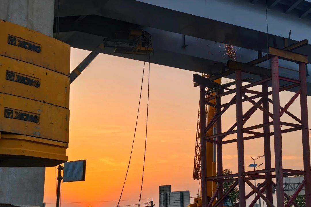 6月26日,中建八局承建的國內(nèi)首條“6改12”高速公路京臺高速齊濟段改擴建工程,12根鋼蓋梁和2處鋼箱梁經(jīng)過起吊、位移、轉(zhuǎn)體、微調(diào)、安裝等有序作業(yè)流程,實現(xiàn)精準落位,標志著項目正式進入上部結(jié)構(gòu)施工階段,為后續(xù)鋼混組合梁橫向滑移打下了堅實基礎(chǔ)。