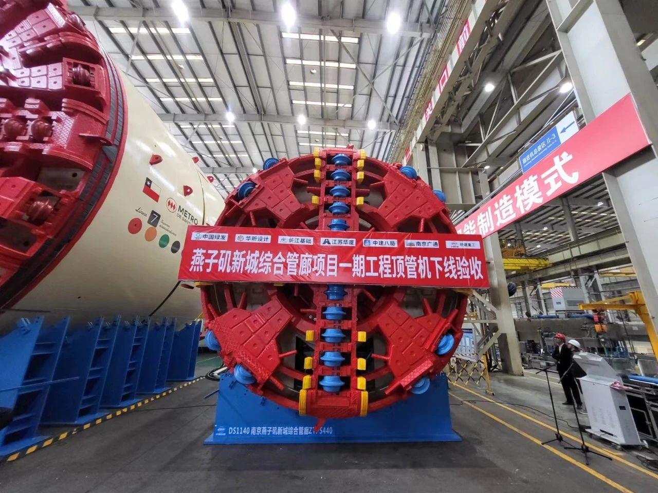 項(xiàng)目綜合艙外徑達(dá)5.4m,為現(xiàn)階段全國最大斷面圓形頂管工程,在國內(nèi)尚無匹配的頂管機(jī)條件下,中建八局聯(lián)合其他單位專項(xiàng)打造國內(nèi)最大直徑頂管機(jī)“鐵軍號”,盾體重約187噸,直徑5.4米,刀盤設(shè)計(jì)開口率33%,單次最大頂進(jìn)距離100米,最大掘進(jìn)速度100毫米/分,相關(guān)技術(shù)成果達(dá)國際先進(jìn)水平。