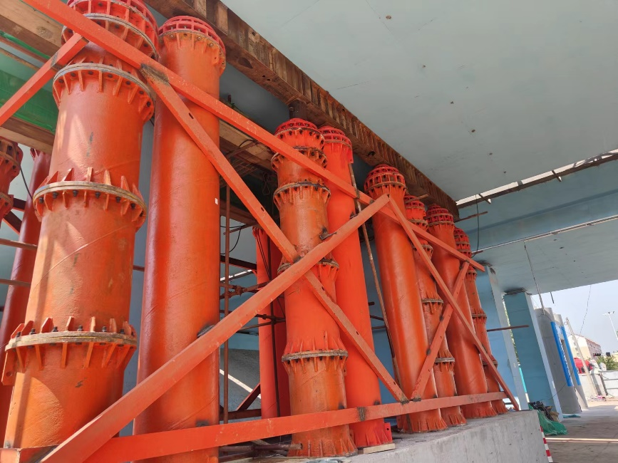 在項目施工過程中,需要四跨現(xiàn)澆梁同步頂升,頂升高度50厘米、重達(dá)2060噸。項目團(tuán)隊采用橋梁整體頂升技術(shù),每個液壓千斤頂配備一個位移傳感器,實時監(jiān)測、控制橋梁頂升的位移和姿態(tài),使同步頂升的精度精確到1毫米,實現(xiàn)千噸重橋梁“拔地而起”。