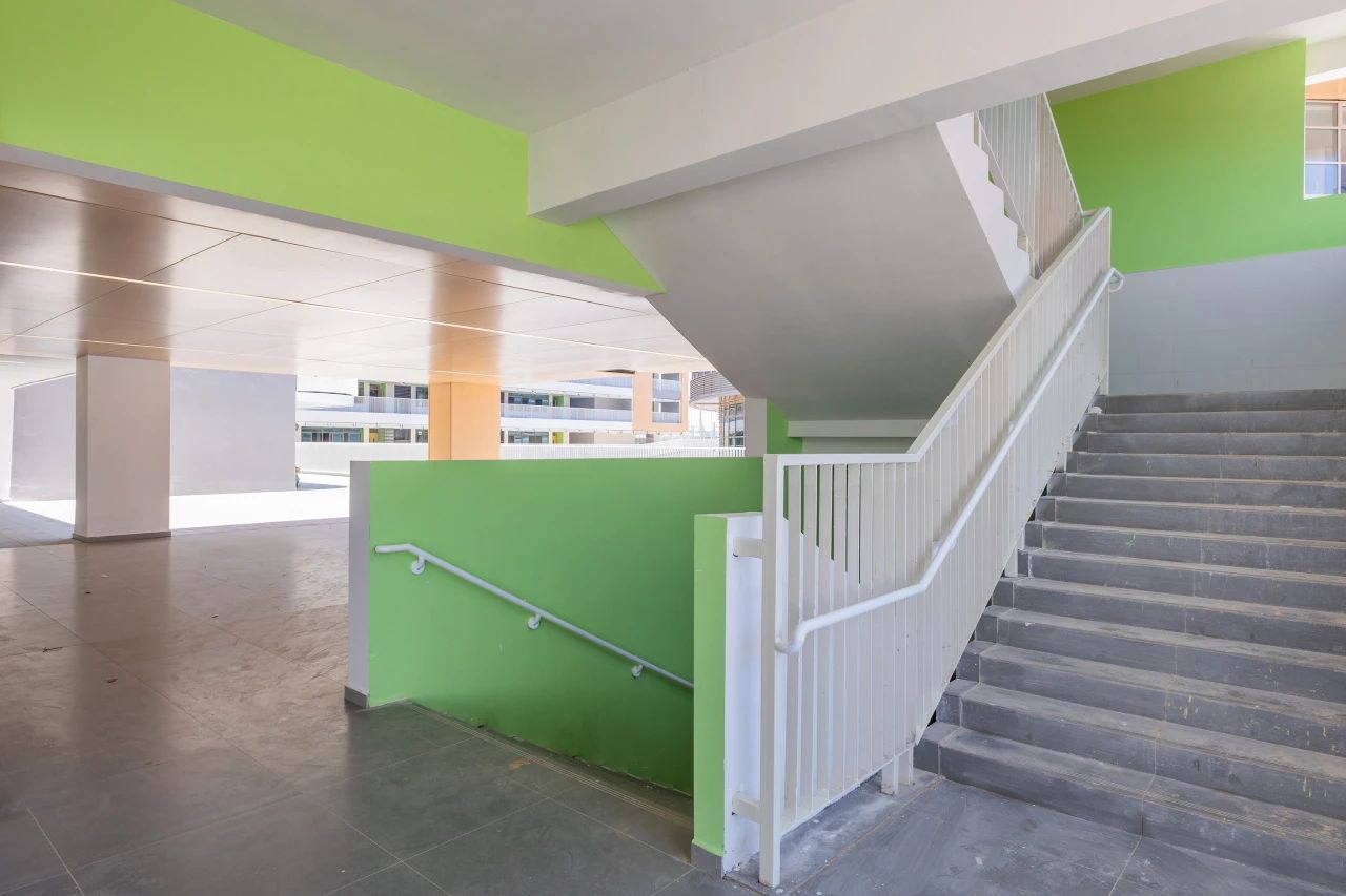 項(xiàng)目以“濱海森林”為設(shè)計(jì)概念,以“垂直群落”為設(shè)計(jì)主題,采用院落式布局教學(xué)樓裝飾色塊碰撞室內(nèi)外景色相映襯,光影交織每個(gè)角落,自成一幅風(fēng)景。
