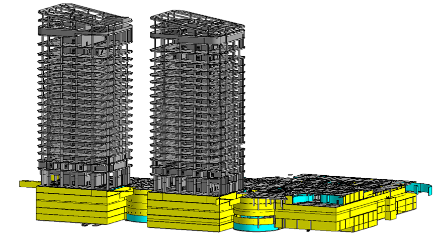 項(xiàng)目主體采用裝配式施工,整體裝配率達(dá)53%,通過(guò)提前制定工序穿插計(jì)劃,實(shí)現(xiàn)裝配作業(yè)與現(xiàn)澆作業(yè)流水穿插,120天完成1800余塊,疊合板960余塊,樓承板、20層預(yù)制樓梯精準(zhǔn)安裝,采用BIM三維場(chǎng)布軟件對(duì)工程全生命周期超前模擬,將各專(zhuān)業(yè)模型合并深化,累計(jì)解決各專(zhuān)業(yè)穿插沖突等問(wèn)題200余項(xiàng)。