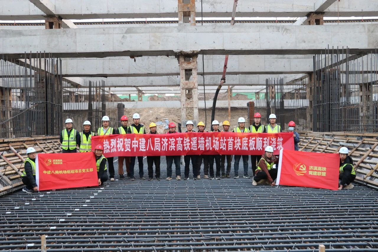 11月22日,中建八局承建的濟(jì)濱高鐵遙墻機(jī)場(chǎng)站項(xiàng)目歷經(jīng)30小時(shí)奮戰(zhàn),完成首塊底板共計(jì)2800立方米混凝土澆筑,標(biāo)志著項(xiàng)目進(jìn)入主體結(jié)構(gòu)施工階段。