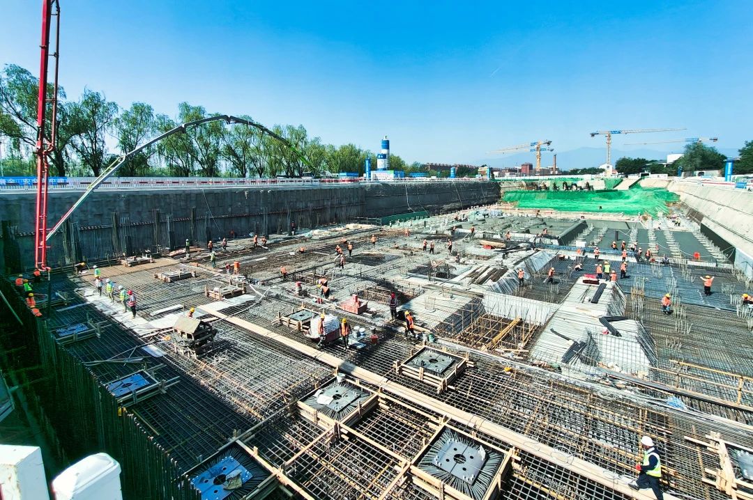 項(xiàng)目踐行“掛圖作戰(zhàn)、適時(shí)生產(chǎn)”理念,制定“總、年、月、周”四級(jí)計(jì)劃,大宗材料進(jìn)場(chǎng)、大方量砼澆筑等重要工作節(jié)點(diǎn)均提前策劃,落實(shí)全員各區(qū)域網(wǎng)格化管理,現(xiàn)場(chǎng)同時(shí)作業(yè)人員高峰時(shí)超800人,保障結(jié)構(gòu)沖出正負(fù)零、主體封頂?shù)汝P(guān)鍵節(jié)點(diǎn)順利完成。