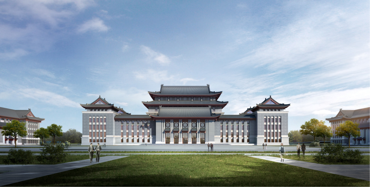 項目位于河南大學鄭州校區(qū),總建筑面積約6.7萬平方米,規(guī)劃圖書館藏書量38萬冊,配套容納1500人會議室以及報告廳、閱覽區(qū)、校史館、展覽館、辦公科研用房等功能分區(qū),建筑整體達到特一級抗震水平。
