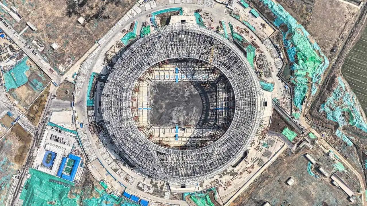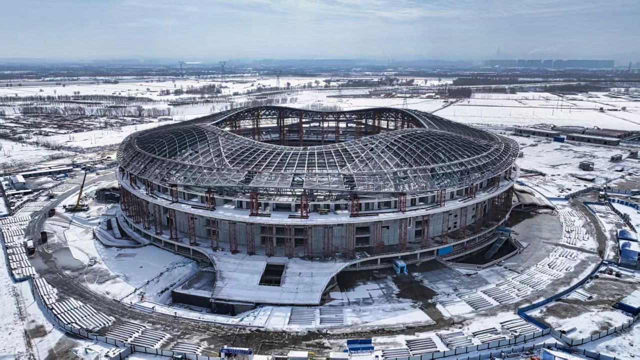 攻克國內(nèi)之最!黃河體育中心專業(yè)足球場成功“戴冠”