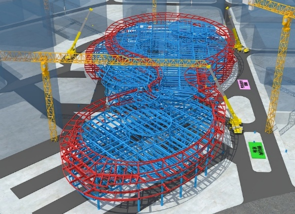 “共享云臺”以流暢多變的鋼結(jié)構(gòu)造型將“云”的形態(tài)具象為“共享”平臺,為了完美演繹雙曲飄帶造型屋頂,項目應(yīng)用三維激光掃描+BIM建模技術(shù),將施工誤差控制在2毫米以內(nèi)。