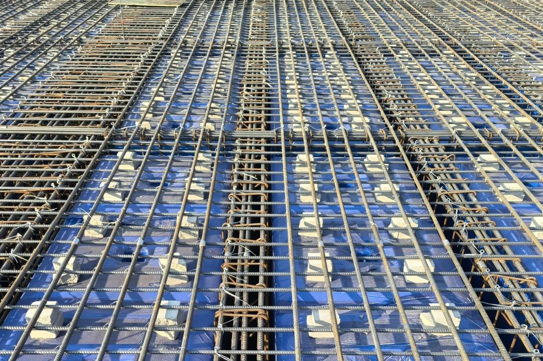 為保證大跨度下結(jié)構(gòu)強度滿足要求,項目采用LPM預(yù)應(yīng)力空心板技術(shù),有效降低訓(xùn)練館二層頂板結(jié)構(gòu)自重,自主研發(fā)新型抗浮施工工藝,將上部鋼筋、肋梁鋼筋、下部鋼筋與空心箱體緊密綁扎形成整體,再于底部模板打出“固定孔”,將上部結(jié)構(gòu)與下部架體緊密連接,保障了箱體結(jié)構(gòu)整體穩(wěn)固。