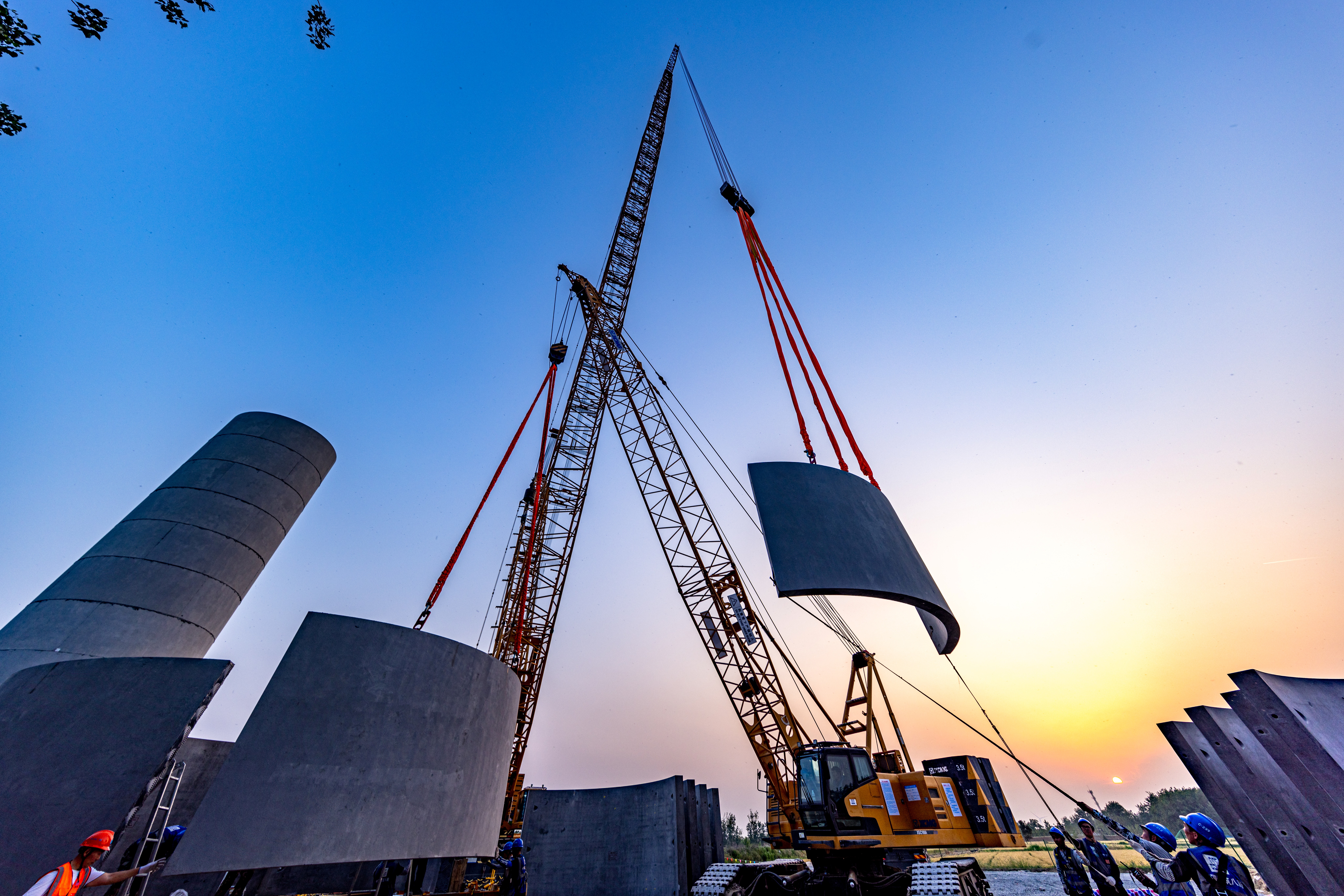 此次吊裝的風(fēng)機高185米,采用“主吊+副主吊”吊裝方式,實現(xiàn)46節(jié)混塔與2節(jié)鋼塔高強螺栓連接,127噸機艙、直徑220米葉輪升空固定。項目團(tuán)隊高度重視前期策劃,提前32天完成7個鄉(xiāng)鎮(zhèn)、20個行政村協(xié)調(diào)工作,采用“一機一案”的施工方式,克服大件運輸、大型設(shè)備吊裝危大工程管控等難點。“吊裝小組”使用智能化風(fēng)速儀、無人機、360°攝像頭等實時監(jiān)測,護(hù)航吊裝全過程,順利完成首臺風(fēng)機百米吊裝。