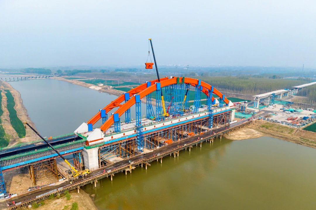 2024-04-15 全線(xiàn)首座合龍!徒駭河上架起“鋼鐵彩虹” 近日,隨著最后一節(jié)段拱肋精準(zhǔn)就位,中建股份承建的津?yàn)H高鐵濟(jì)南聯(lián)絡(luò)線(xiàn),全線(xiàn)首座系桿拱橋拱肋順利合龍,為下一步架梁施工奠定堅(jiān)實(shí)基礎(chǔ)。