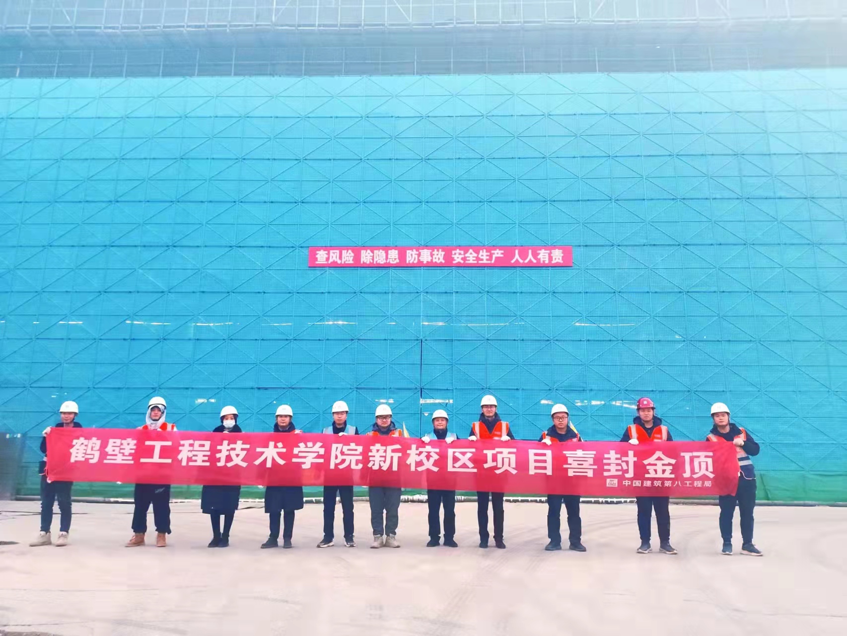 2023-01-04 河南鶴壁工程技術學院新校區(qū)項目(一期)主體結構封頂 1月4日,在建設單位、監(jiān)理單位及項目全體管理人員的共同見證下,鶴壁工程技術學院新校區(qū)項目(一期)順利封頂。 作為鶴壁市首所本科院校,中建八局一公司在鶴壁市的首個承建項目,受到鶴壁市政府、中建八局一公司各級領導的大力關注與支持。