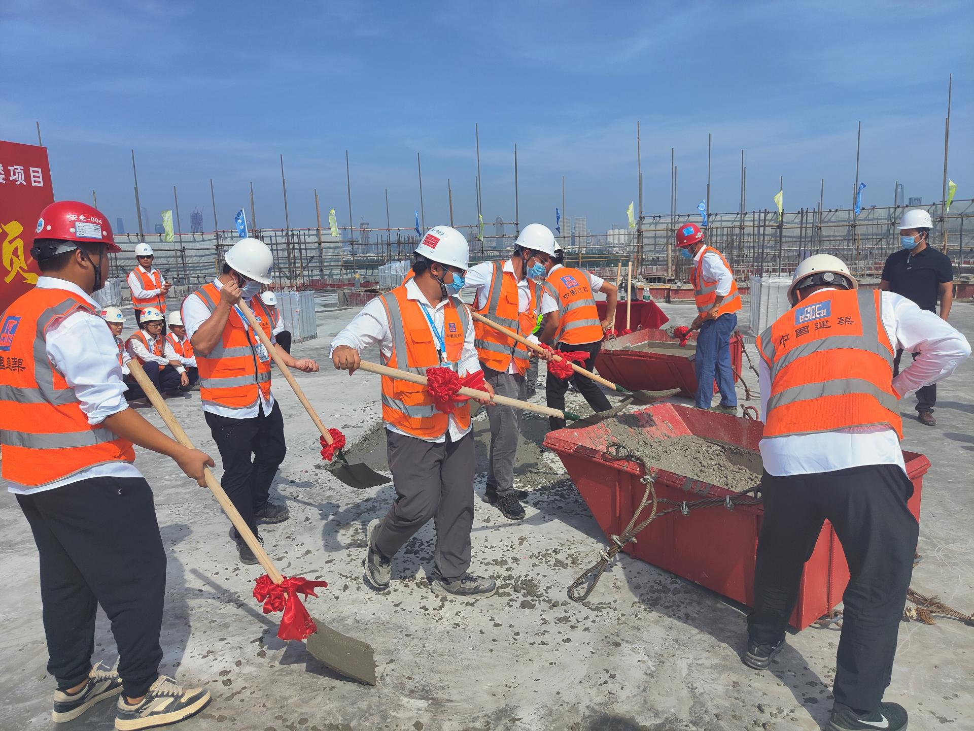 2022-11-02 廣州細(xì)胞研發(fā)樓項目主體結(jié)構(gòu)封頂 10月30日,細(xì)胞研發(fā)樓項目舉辦主體結(jié)構(gòu)封頂儀式。 中建八局一公司副總經(jīng)理兼華南公司黨總支書記、總經(jīng)理谷力,華南公司黨總支副書記、執(zhí)行總經(jīng)理高亮,副總經(jīng)理王升華,副總經(jīng)理陳飛,建設(shè)單位、設(shè)計單位、監(jiān)理單位部分領(lǐng)導(dǎo)及項目全體管理人員共同見證這一時刻。