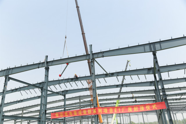 奇芯光電項(xiàng)目E1廠房鋼結(jié)構(gòu)封頂