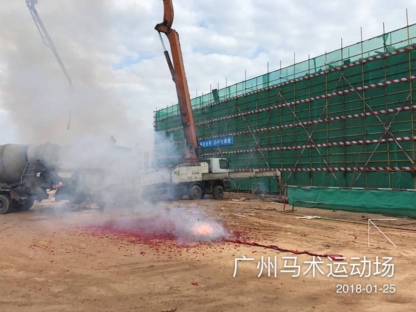 2018-01-26 公司廣州香港馬會(huì)馬匹訓(xùn)練場(chǎng)項(xiàng)目一期擴(kuò)建工程賽事中心主體結(jié)構(gòu)順利封頂 1月25日清晨,伴隨著最后一方混凝土的澆筑,在業(yè)主、監(jiān)理及項(xiàng)目部領(lǐng)導(dǎo)的見(jiàn)證下,公司廣州香港馬會(huì)馬匹訓(xùn)練場(chǎng)項(xiàng)目賽事中心正式完成主體結(jié)構(gòu)封頂。
