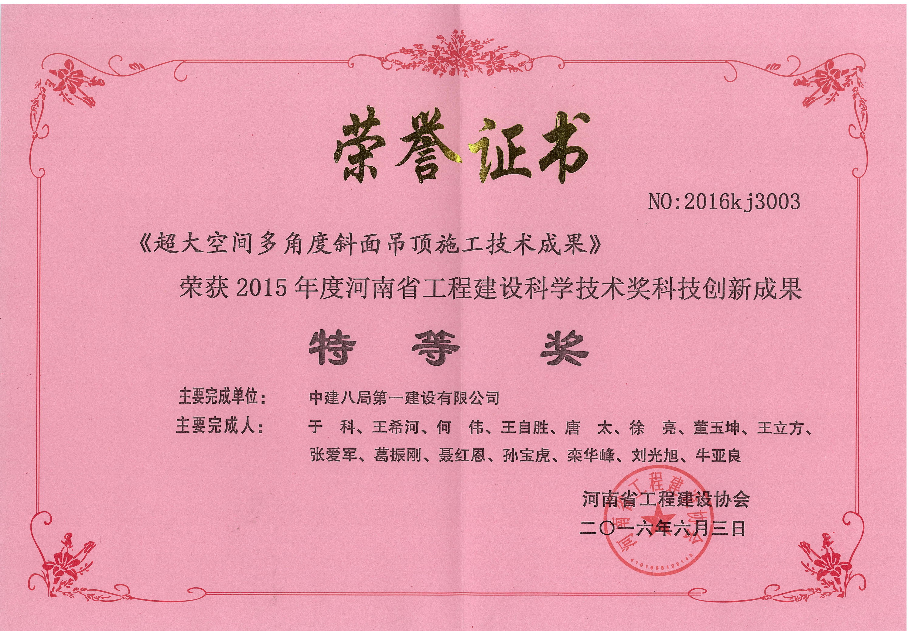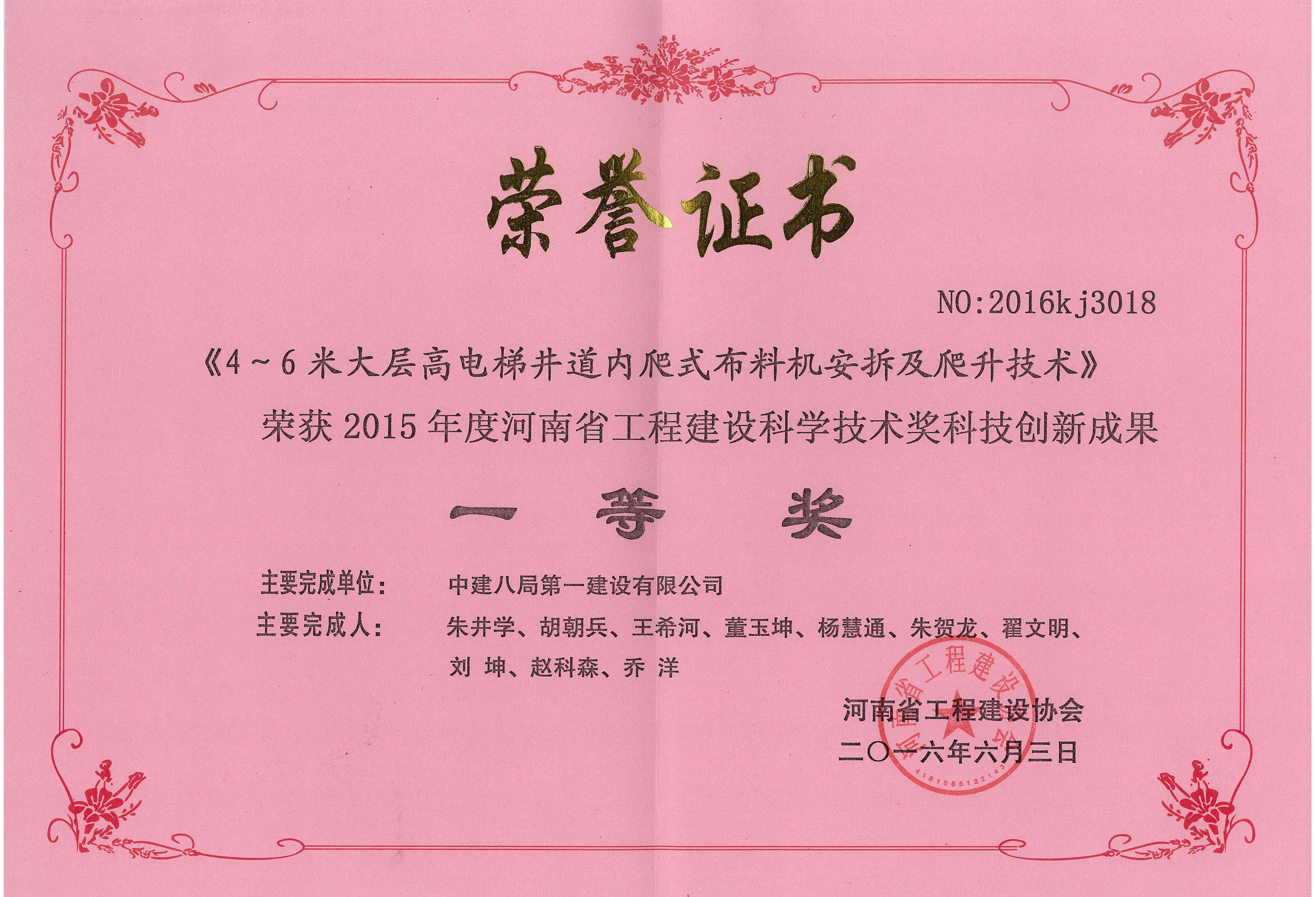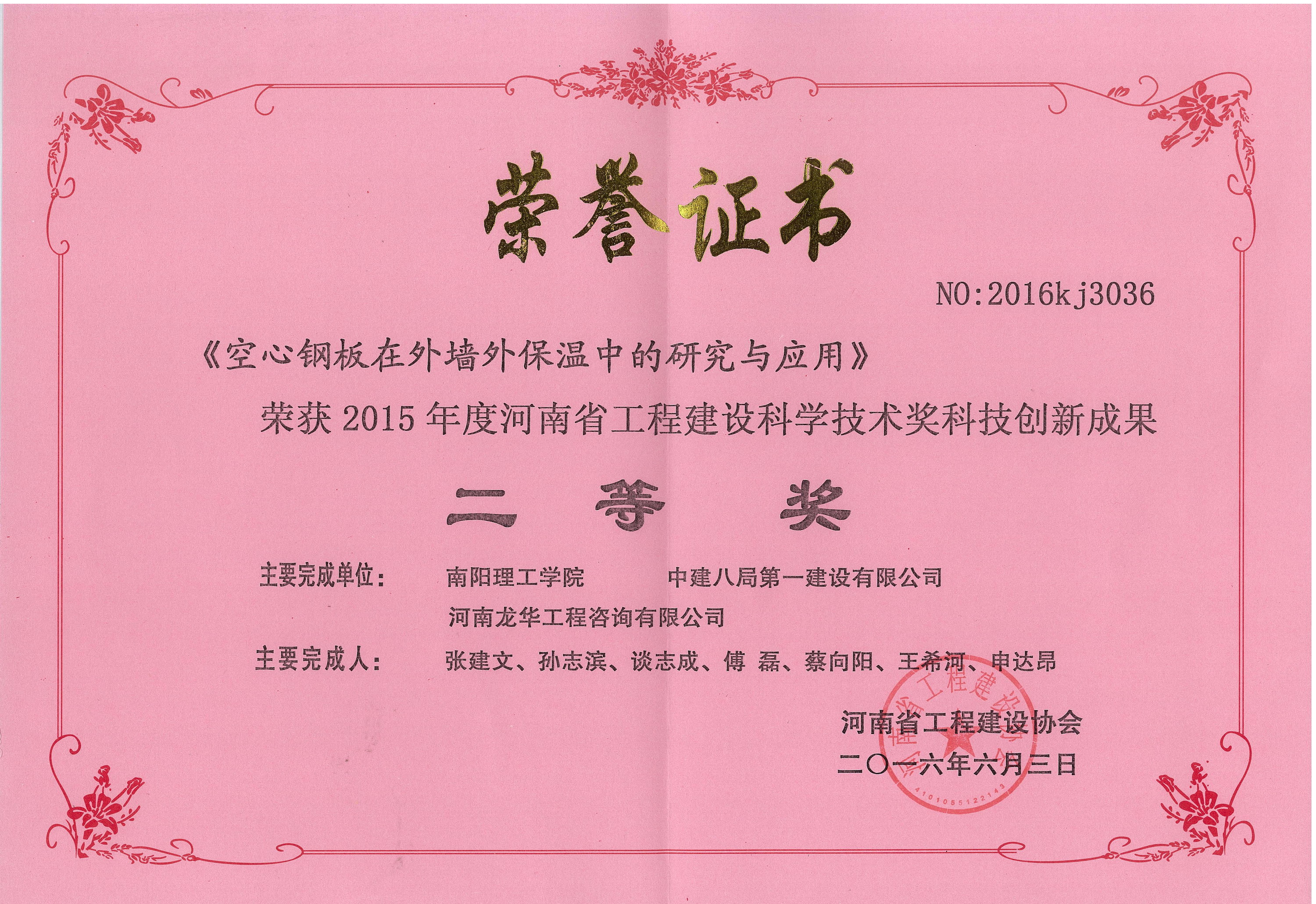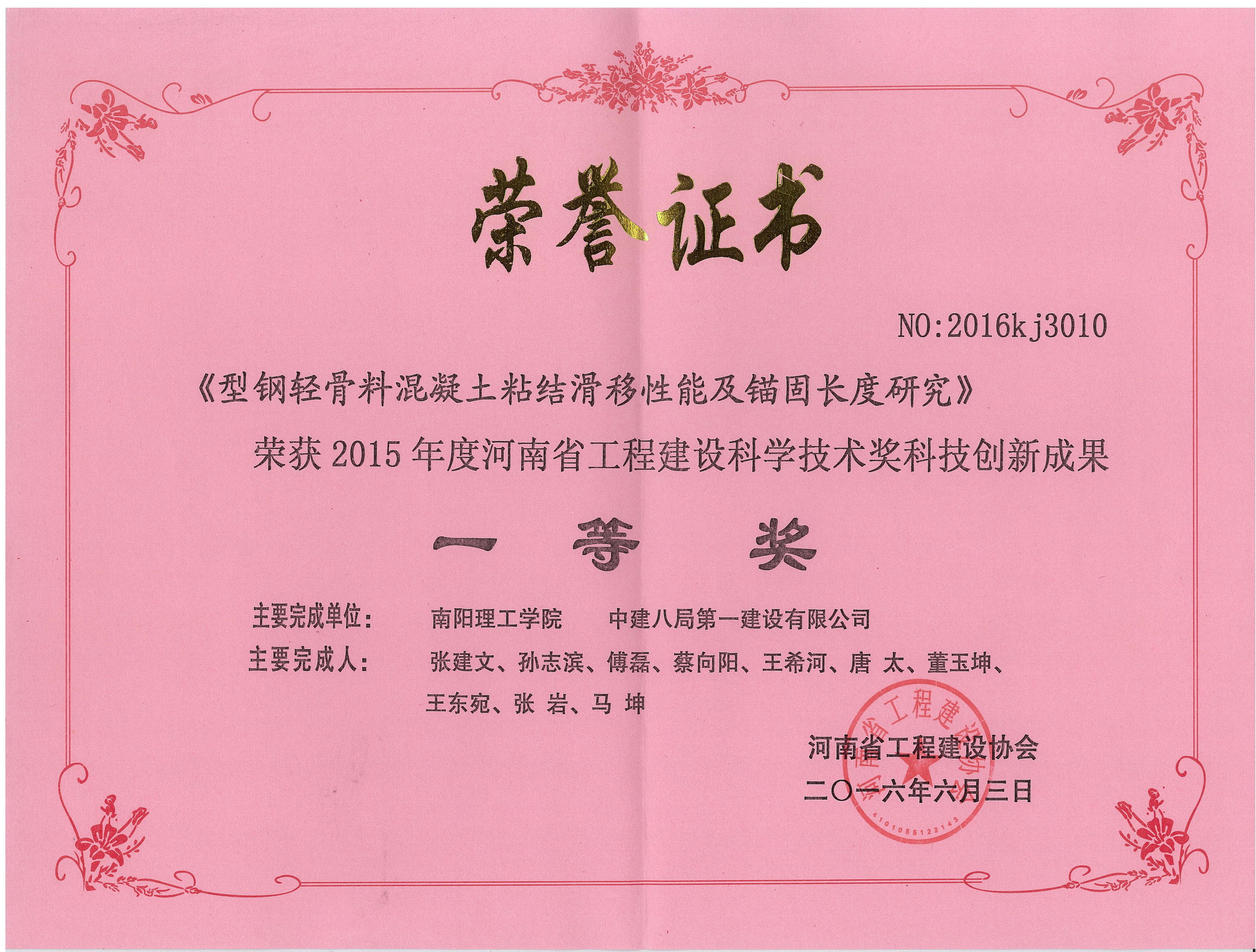公司榮獲2015年度河南省工程建設(shè)科學(xué)技術(shù)獎(jiǎng)4項(xiàng)