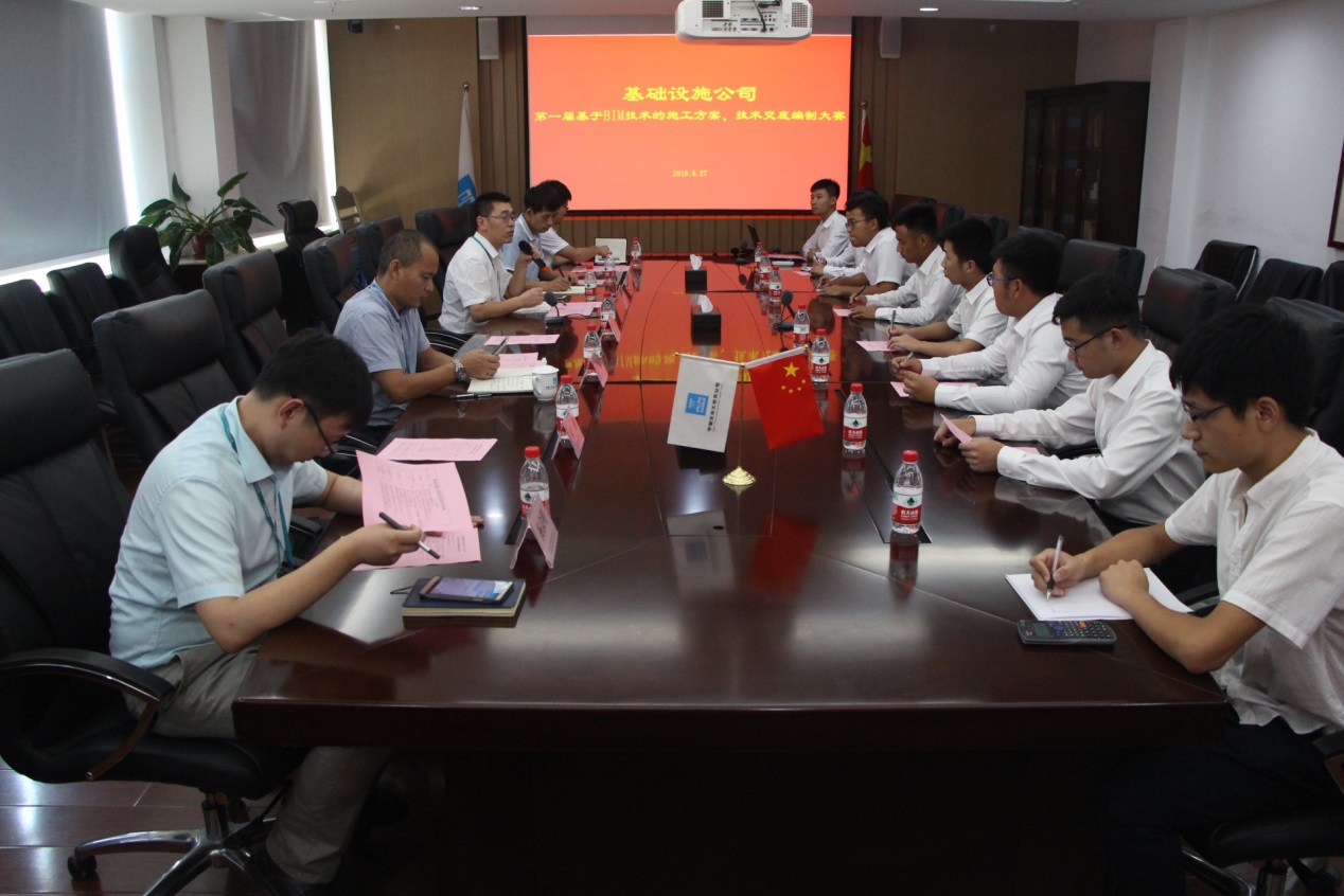 2018-08-28 【八一 ? 基礎(chǔ) | 拓路騰飛】 基礎(chǔ)設(shè)施公司第一屆新員工基于BIM技術(shù)的施工方案及技術(shù)交底編制大賽成功舉辦 8月27日下午,基礎(chǔ)設(shè)施公司第一屆新員工基于BIM技術(shù)的施工方案及技術(shù)交底編制大賽在公司五樓會(huì)議室圓滿落幕。
