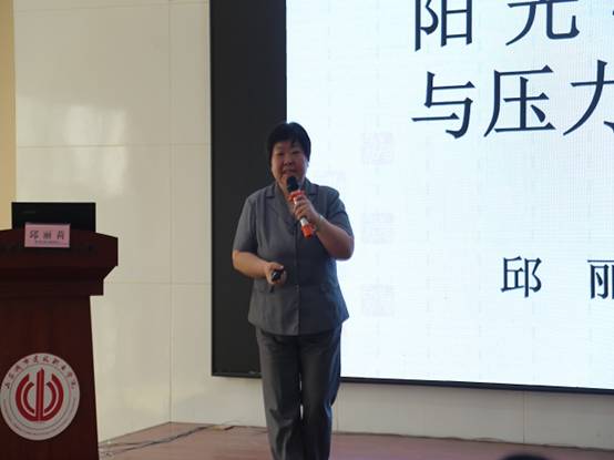 25日上午,由山東省委黨校教授邱麗莉教授為學(xué)員進(jìn)行為期半天的《陽光心態(tài)》授課。邱教授授課幽默而生動(dòng),結(jié)合時(shí)事新聞向大家闡述了保持陽光心態(tài)的重要性,并且傳授了多種疏解壓力的方法。