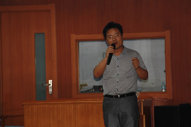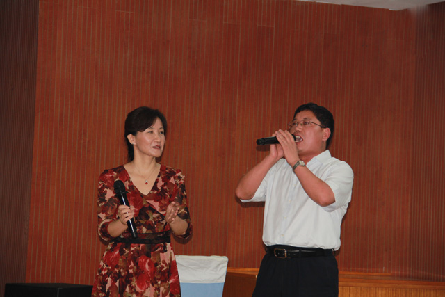 “揮揮手微笑著告別昨天,擁抱更蔥蘢的未來”,19點30分,晚會在一首《最美的答案》中拉開序幕。隨后大家紛紛亮出自己的才藝,模仿大比拼、小品、歌劇、合唱等精彩的節(jié)目將晚會逐步推入高潮。新員工王政模仿的費玉清,無論從聲音還是形體動作上都惟妙惟肖,讓大家贊口不絕。小品《一公司小夫妻》采用經(jīng)典――《實話實說》風格,演繹了大家眼中的一公司,其中的精彩對話讓大家捧腹。教官團隊表演的格斗、拳術、棍術也讓大家大開眼界,為晚會增添了另一道光彩。面對現(xiàn)場熱烈的氣氛,公司領導也紛紛上臺獻上了精彩的表演,將整個晚會推向另一個高潮。董事長李永明為大家傾情演唱了《雨花石》和《活出個樣子來給自己看》,希望新員工們像雨花石學習,經(jīng)得住平凡與寂寞,在平凡的崗位上做出不平凡的業(yè)績。黨委書記許紅聲情并茂,為大家朗誦了詩歌《青春萬歲》,展現(xiàn)了青春的無限美好與活力,她還演唱了《隱形的翅膀》,鼓勵大家在逆境中也要善于看到希望,堅強的奮斗下去。人力資源總監(jiān)王有標也為大家演唱了《凡人歌》,贏得了陣陣掌聲。培訓人員工作團隊也為大家獻上了《相逢是首歌》。