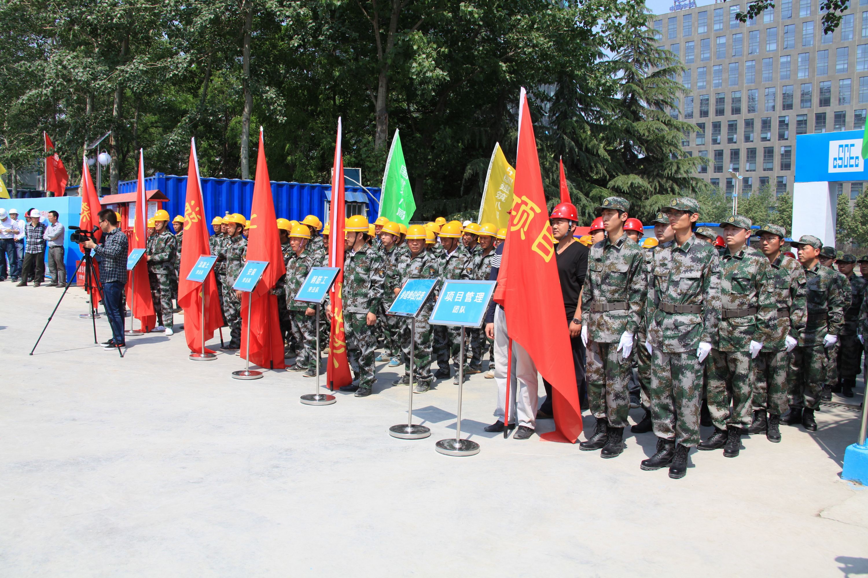 濟南漢峪金融中心A4地塊二標段項目部舉行勞動競賽、三號聯(lián)創(chuàng)、創(chuàng)雙優(yōu)暨準軍事化管理啟動儀式