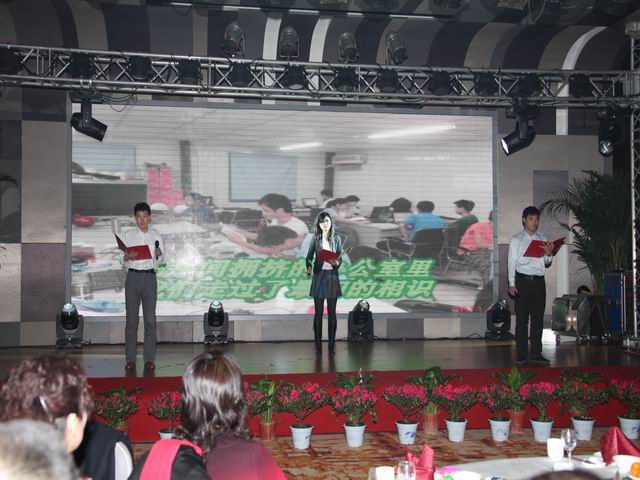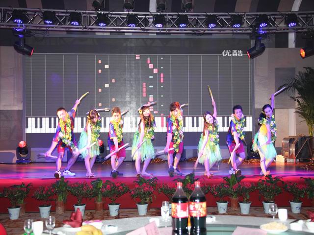 團拜會演出在富有激情的舞蹈《南非風情》中拉開了帷幕。整臺演出精彩紛呈,高潮迭起。員工自編自演的各類節(jié)目豐富多彩,幸運大抽獎更是讓員工驚喜連連,演出現(xiàn)場歡聲笑語不斷。相聲《咱公司的那點事》、小品《牛郎與織女》、啞劇《候車室的故事》讓現(xiàn)場觀眾笑成一片;歌曲《相親相愛》唱出了一公司員工團結互助是一家人的心聲;歌伴舞《荷塘月色》在現(xiàn)場燈光和舞臺的配合下,為大家呈現(xiàn)了一幅唯美的畫面;別具風格的三句半《公司喜事多》,讓大家過了一把情景劇版三句半隱;情景詩朗誦《閃亮的日子 閃亮的青春》則為大家講述了一群年輕人到工地后半年的切身感受;歌手楊坤的《無所謂》被演員模仿的惟妙惟肖,足以以假亂真;舞蹈串燒《青春旋律》讓大家感受到了一公司年輕人的青春活力;小品《施工情》講述了一公司人舍小家顧大家、令行禁止、使命必達的精神,得到了現(xiàn)場觀眾的共鳴。演出在氣勢磅礴的《走向復興》中圓滿落幕,出席團拜會的領導同志走上舞臺,同全體演員合影留念。