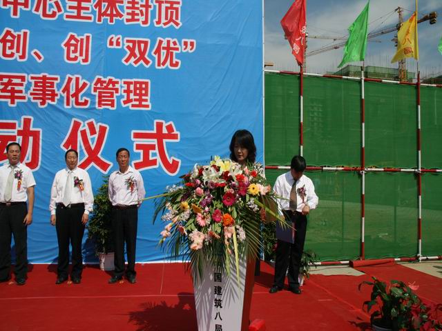 9月26日上午,青島李滄萬達(dá)廣場項(xiàng)目隆重舉行購物中心工程主體封頂暨黨員先鋒號、工人先鋒號、青年文明號“三號聯(lián)創(chuàng)”;“工程優(yōu)質(zhì)、干部優(yōu)秀”的創(chuàng)雙優(yōu)活動及準(zhǔn)軍事化管理啟動儀式,青島市建管局副局長孫維民、青島市李滄區(qū)商貿(mào)辦主任欒復(fù)先、青島市李滄區(qū)建設(shè)局局長劉波、公司黨委書記許紅、紀(jì)委書記薛樹海、一公司青島分公司經(jīng)理董恩瑯及其他相關(guān)領(lǐng)導(dǎo)應(yīng)邀參加了活動,活動由一公司青島分公司黨委書記王會林主持。
