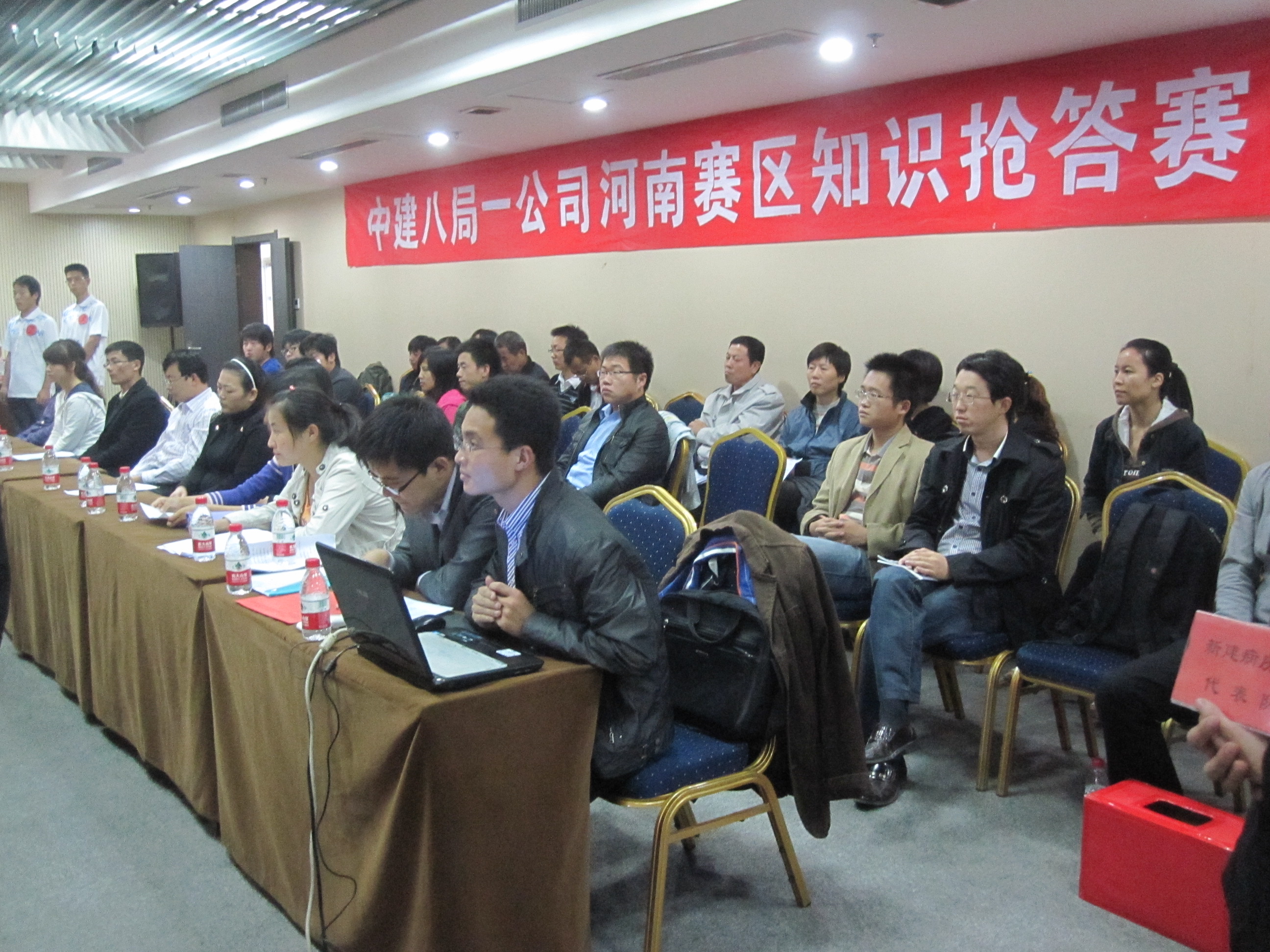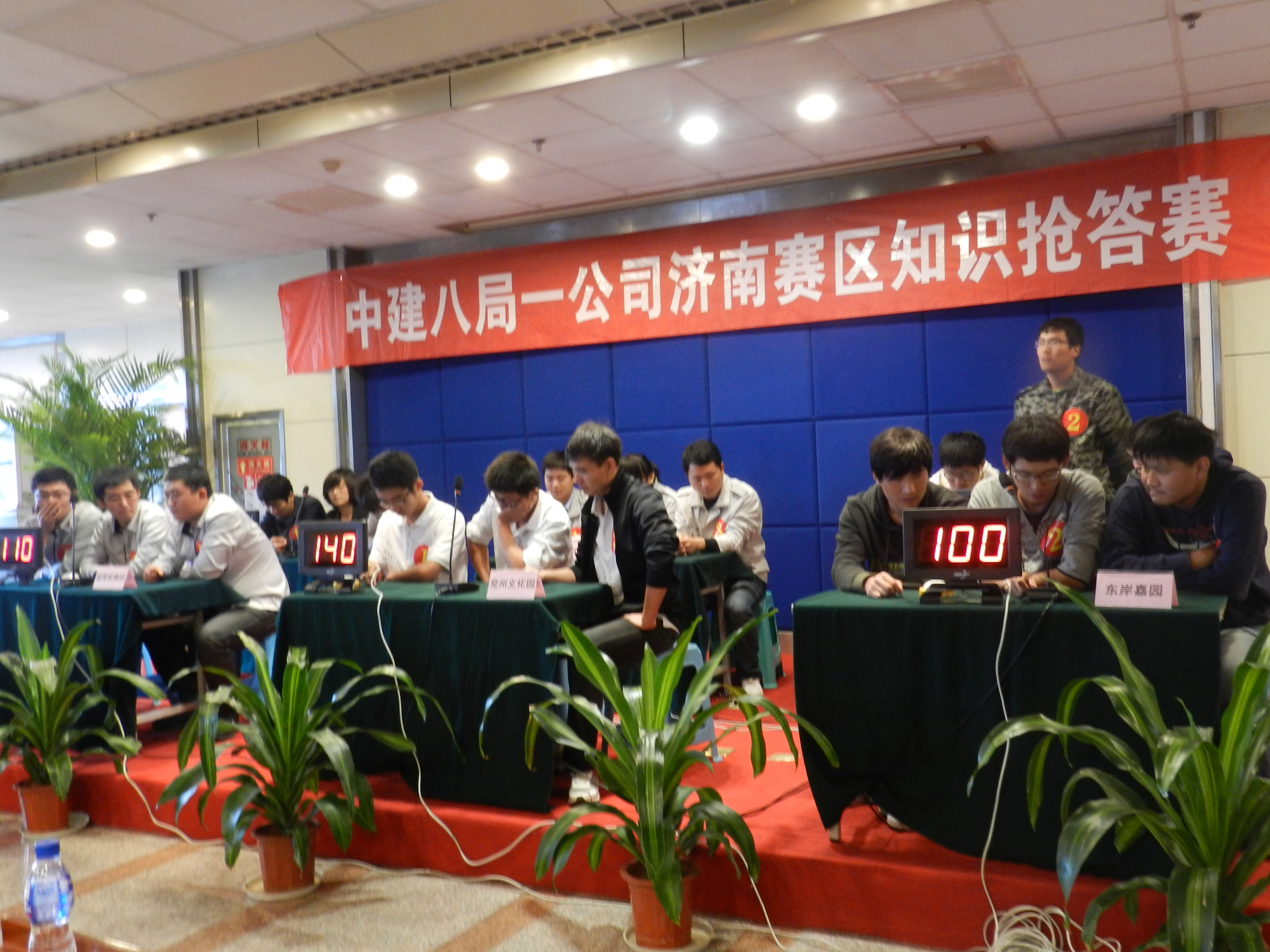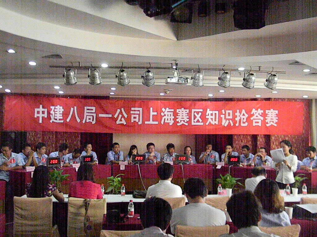 青島分公司、上海分公司、廣東分公司于9月3號率先開賽,北京分公司、河南分公司、安徽分公司、濟南分公司于9月17號同時開賽,各單位領(lǐng)導高度重視,廣東分公司經(jīng)理、書記均出席了此次活動、北京分公司項目經(jīng)理均到現(xiàn)場為自己的隊員加油鼓勁,所有參賽隊員及觀眾均統(tǒng)一著裝,體現(xiàn)了對此次活動的重視程度。河南公司制作的知識搶答賽預(yù)告片給人耳目一新的感覺;廣東賽區(qū)廣東分公司機關(guān)代表隊在風險題環(huán)節(jié)不敵水榭春天代表隊,錯失冠軍;濟南賽區(qū)濟南公安局項目代表隊遙遙領(lǐng)先、兗州文化園項目代表隊緊追其后;北京賽區(qū)天津中船重工項目代表隊和天津檢疫局代表隊展開了激烈爭奪。安裝分公司、裝飾分公司、基礎(chǔ)設(shè)施分公司書記也根據(jù)情況出席了分片區(qū)比賽現(xiàn)場?;顒咏M委會從各單位準備情況、項目參賽率、錯題率、犯規(guī)情況、觀眾人數(shù)、主持人主持情況、書面答題等各個方面對各賽區(qū)組織工作進行了綜合考評。