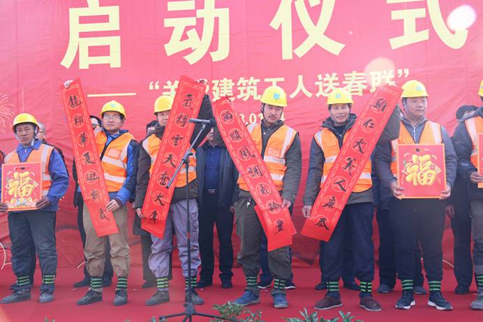 公司暖冬系列活動(dòng)啟動(dòng)儀式暨關(guān)愛建筑工人送春聯(lián)活動(dòng)在濟(jì)南中央商務(wù)區(qū)安置區(qū)(CBD)項(xiàng)目舉行