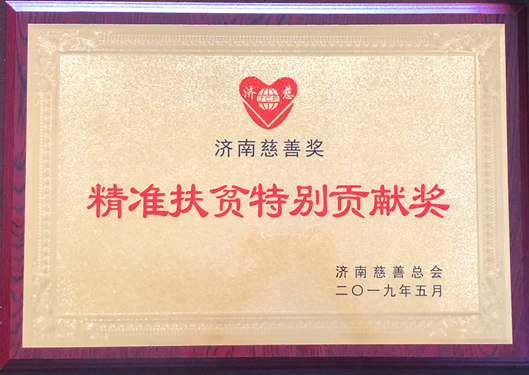 公司榮獲濟(jì)南市慈善總會頒發(fā)的精準(zhǔn)扶貧特別貢獻(xiàn)獎