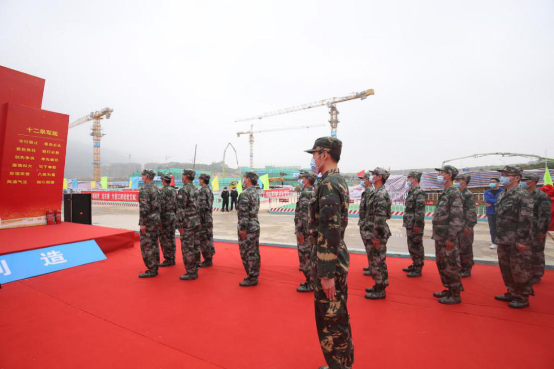 頑強拼搏、知難而上、敢于創(chuàng)新、勇于爭先,項目負(fù)責(zé)人劉成剛帶領(lǐng)工友宣誓,發(fā)揚“鐵軍”精神,誓要圓滿完成建設(shè)任務(wù)。