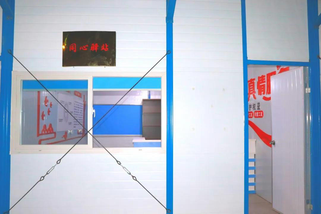 為充分發(fā)揮工會組織“娘家人”的作用,更好地服務(wù)一線職工、工友,激發(fā)大家投身工程建設(shè)的工作熱情,項目成立“同心驛站”。