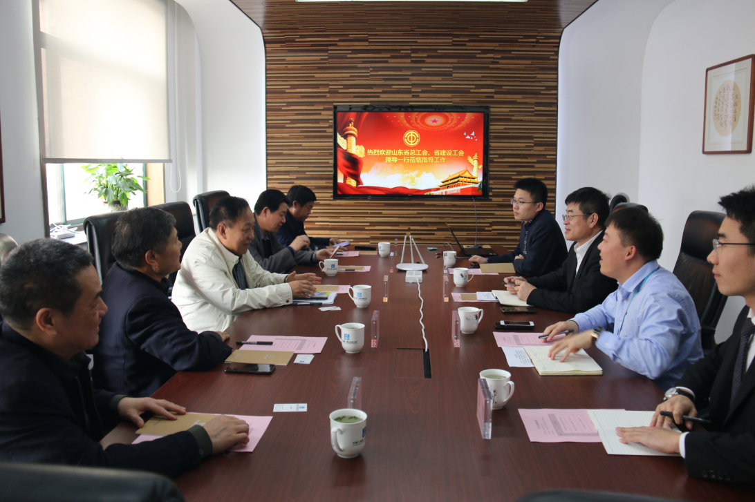 2019-03-19 山東省總工會、省建設(shè)工會蒞臨公司調(diào)研工會工作 3月18日下午,山東省總工會對外交流中心主任白明、幫扶中心主任羅鵬,省建設(shè)工會主席薛希法、副主席邵永立,省石化工會主席王吉盛一行蒞臨公司調(diào)研一公司及海外項目工會開展情況,公司黨委副書記、工會主席李云,工會工作部負責人方健,海外事業(yè)部黨總支書記、工會主席高繼貴,濟州夢想大廈項目經(jīng)理張健等陪同調(diào)研。