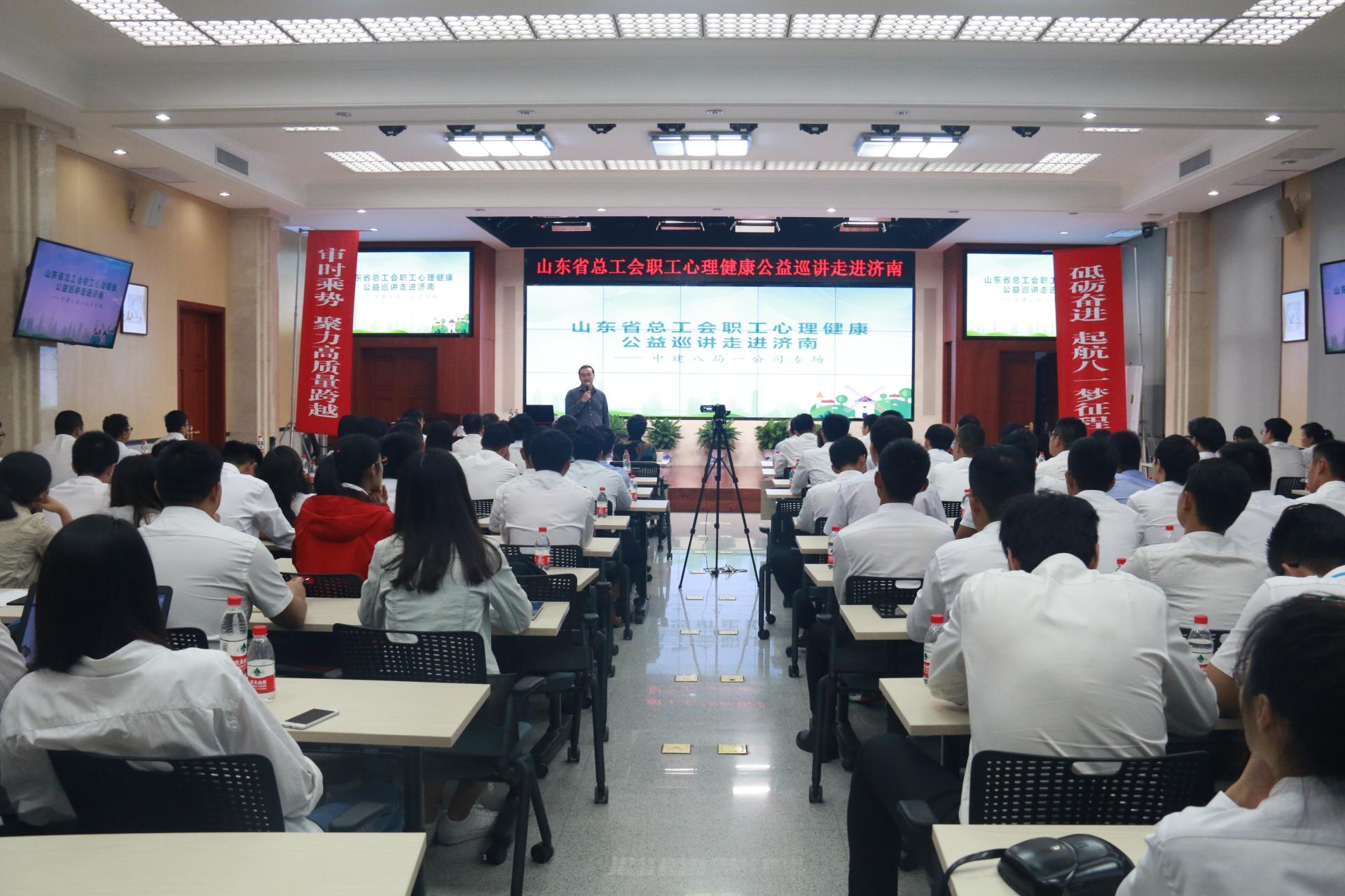 2018-09-19 關愛職工心理健康,構建和諧工作氛圍——山東省總工會職工心理健康公益巡講走進一公司 關愛職工心理健康,構建和諧工作氛圍 ——山東省總工會職工心理健康公益巡講走進一公司 9月19日下午,濟南市總工會副主席蒲玉全,市總工會權益保障部部長周延,市總工會直屬工會主任王娟,市總工會權益保障部副部長董文峰及心理學博士、副教授、莫斯科國立大學博士后、山東省心理協(xié)會理事王錚一行來到一公司培訓中心開啟山東省總工會職工心理健康公益巡講走進濟南——中建八局一公...