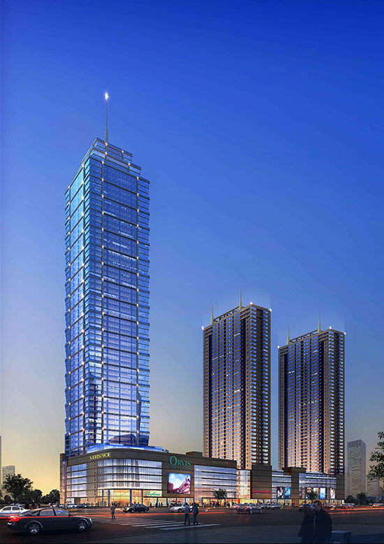 The project is located at the intersection between Zhongshan South Road and New Times Business Street in Yijiang District, Wuhu City, Anhui Province. With the height of the main structure of 273.57 meters (including the antenna of 318 meters) and 69 floors in total, this is the tallest building and landmark building in Wuhu City.