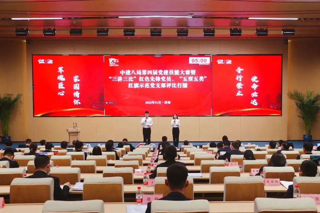 2022-11-04 中建八局舉辦第四屆黨建技能大賽暨“三講三比”紅色先鋒黨員、“五型五類”紅旗示范黨支部評比打擂 11月2日,中建八局第四屆黨建技能大賽暨“三講三比”紅色先鋒黨員、“五型五類”紅旗示范黨支部評比打擂活動在局人才發(fā)展中心(山東)舉行。