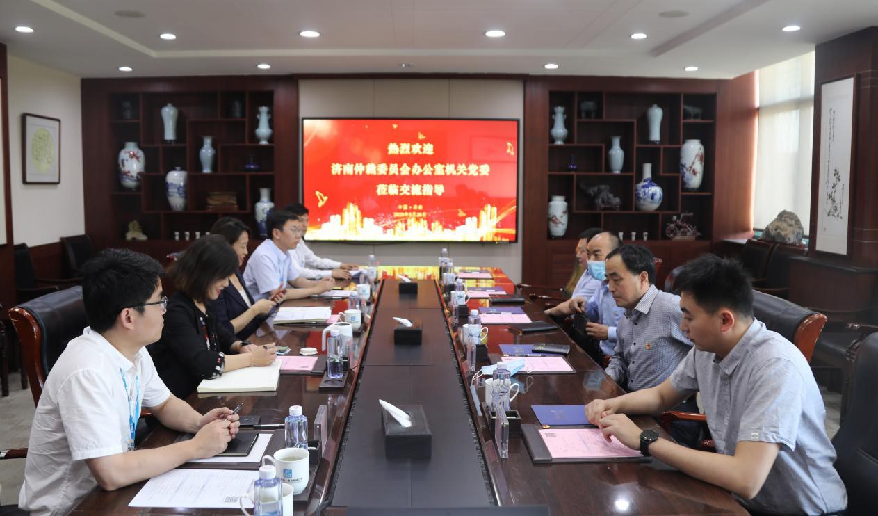 2020-05-27 濟(jì)南仲裁委辦公室機(jī)關(guān)黨委到公司交流黨建工作 5月26日下午,濟(jì)南仲裁委辦公室黨組成員、機(jī)關(guān)黨委書記謝頻,黨組成員韓公勝一行4人到一公司進(jìn)行黨建工作交流。