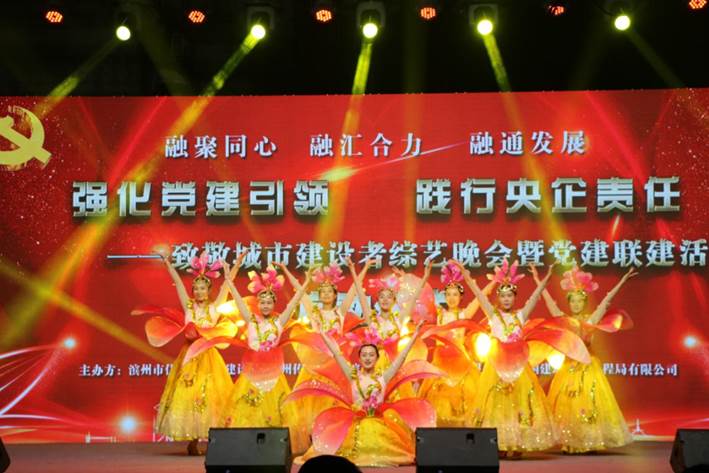 2020-08-30 濱州市政項目舉辦致敬城市建設(shè)者綜藝晚會暨黨建聯(lián)建活動啟動儀式 8月28日是山東濱州市撤地設(shè)市二十周年,中建八局聯(lián)合濱州市住房和城鄉(xiāng)建設(shè)局、濱州財金集團(tuán)、濱州傳媒集團(tuán),在公司承建的濱州市政項目共同舉辦“融聚同心、融匯合力、融通發(fā)展----致敬城市建設(shè)者綜藝晚會暨黨建聯(lián)建活動啟動儀式”。
